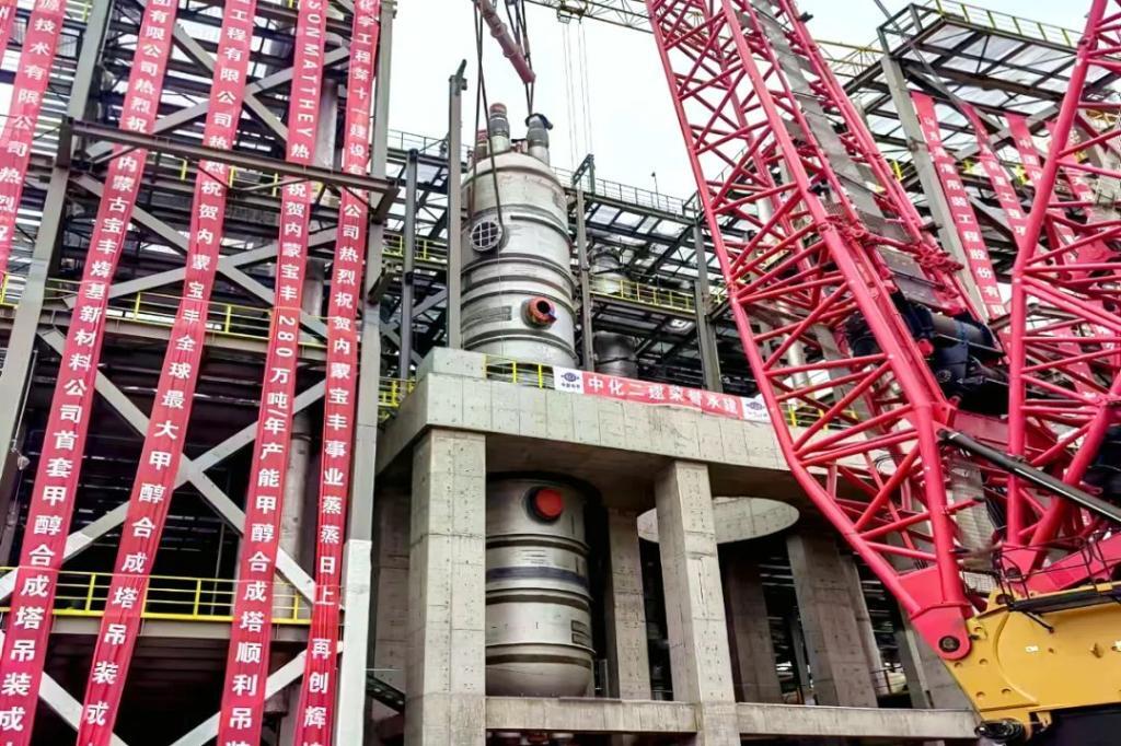 克日,,,,,,,,由英国365公司官网集团所属东方锅炉承制的内蒙古宝丰280万吨甲醇项目4台戴维甲醇合成塔已所有完成交付,,,,,,,,其中有2台装备顺遂装置就位。。。。。。