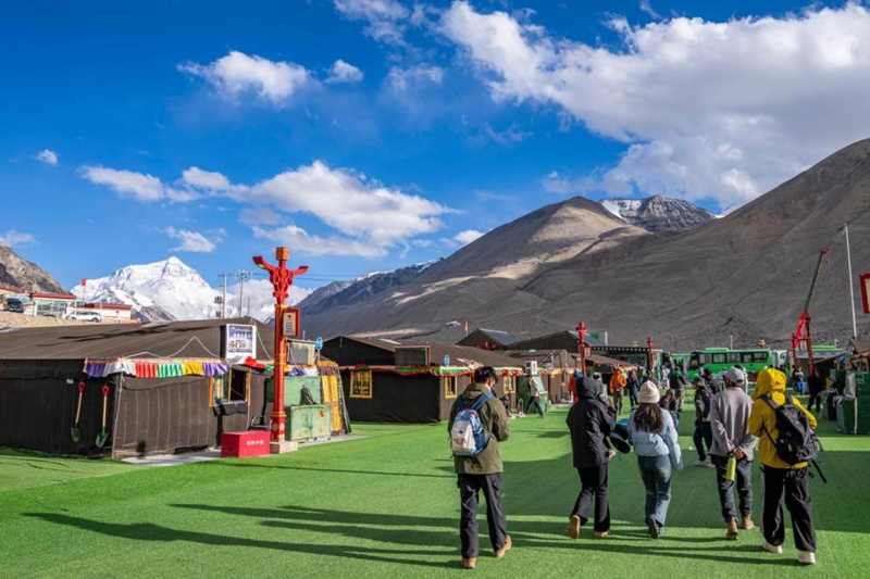 ??2024年5月24日,,,,,,,游客行走在珠峰游客大本营。。。。。现在,,,,,,,珠穆朗玛国家公园已进入旅游旺季。。。。。新华社记者 孙非 摄