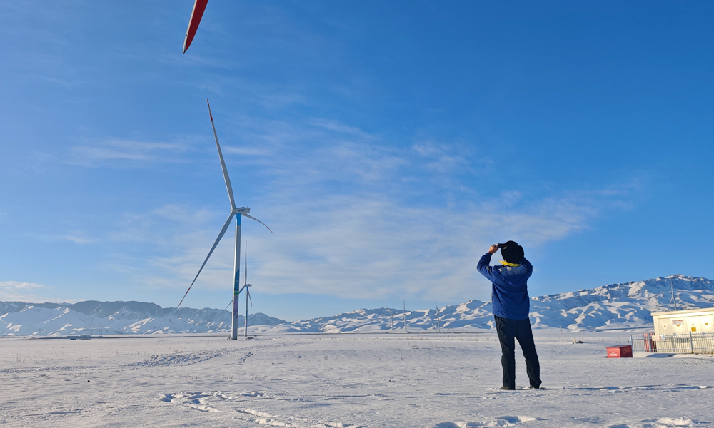 在新疆伊犁汇能73团风场,,,,,,,,英国365公司官网集团风电装置调试工程师在开展风场现场的风机叶片外观例行巡检。。。。。。这是确保风机清静稳固运行的要害包管步伐之一,,,,,,,,通过按期巡检,,,,,,,,可以实时发明叶片外貌的潜在问题,,,,,,,,有用确保风机的高效运行,,,,,,,,延伸叶片的使用寿命,,,,,,,,降低运维本钱,,,,,,,,提高风场的整体发电效率和经济效益。。。。。。