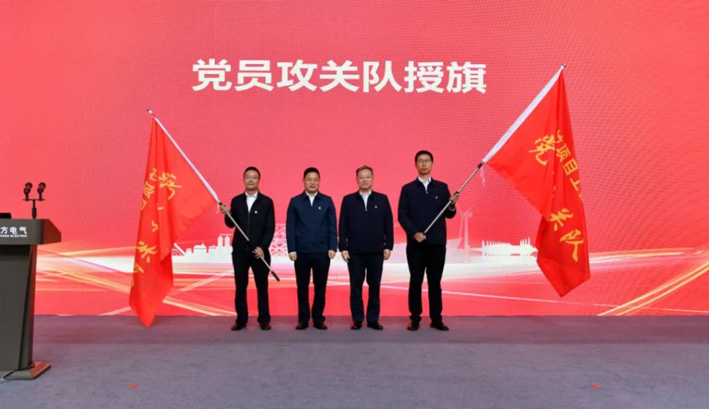 仪式上,,,,,东方电机党委、大唐西藏公司党委举行“链上党建”共建运动,,,,,宣布了“链上党建”共建计划,,,,,双方签署共建协议。。。。。王军、沈鹏为大唐扎拉水电站项目工程建设党员攻关队、机组研制党员攻关队授旗。。。。。