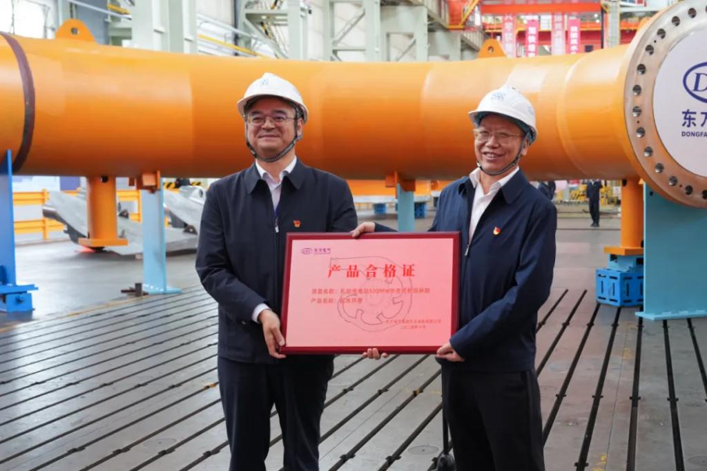 双方代表移交了大唐扎拉水电站国产化首台500兆瓦攻击式机组配水环管及格证。。。。。