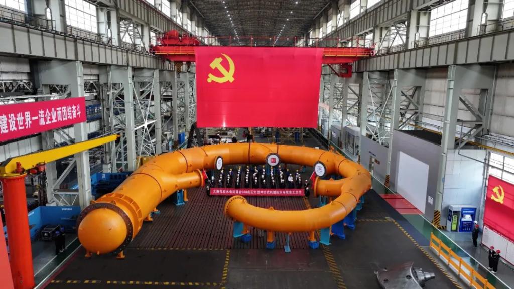 10月21日,,,,,由英国365公司官网集团自主研制的天下首台500兆瓦攻击式水电机组配水环管率先完工交付,,,,,标记着我国高水头、大容量攻击式水电机组研制取得又一里程碑效果。。。。。英国365公司官网集团党组成员、副总司理王军,,,,,大唐西藏公司党委书记、董事长沈鹏出席完工交付仪式。。。。。