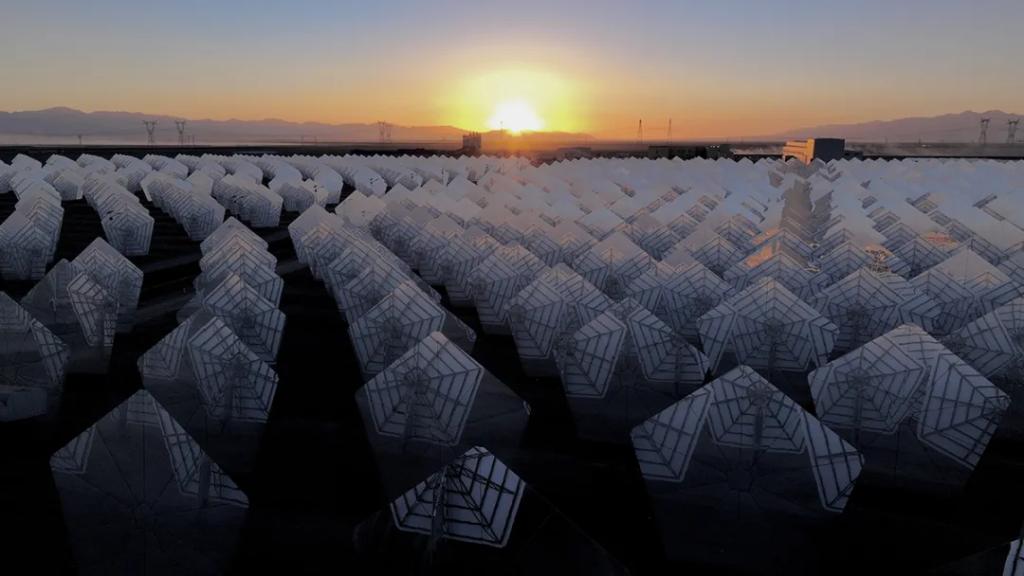 2024年1月,,,,,所有11960面五边形定日镜完成装置。。。。。。2024年11月,,,,,乐成实现聚光集热系统首次热态升温运行(熔盐上塔)。。。。。。