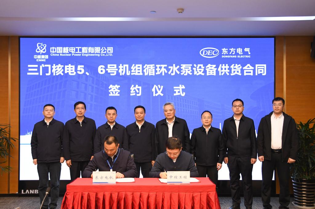 2月25日,,,,,,,,英国365公司官网集团所属东方电机与中国核电工程有限公司举行三门核电5、6号机组循环水泵装备供货条约签约。。。。。。。。签约仪式上,,,,,,,,双方围绕核电手艺立异、工业协同生长等睁开深入讨论。。。。。。。。