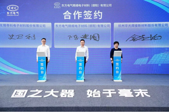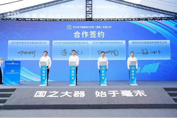 会上,,,,,,,,东方精材划分与无锡帝科、杭州华光签署合作协议,,,,,,,,绵竹市政府与东方研究院签署合作协议,,,,,,,,东方江峡工业投资、德阳投资控股集团、四川绵竹高发投资集团、东方研究院签署合作协议,,,,,,,,江苏瀚思瑞与四川绵竹高新手艺工业园区签署合作协议。。。。。。。。